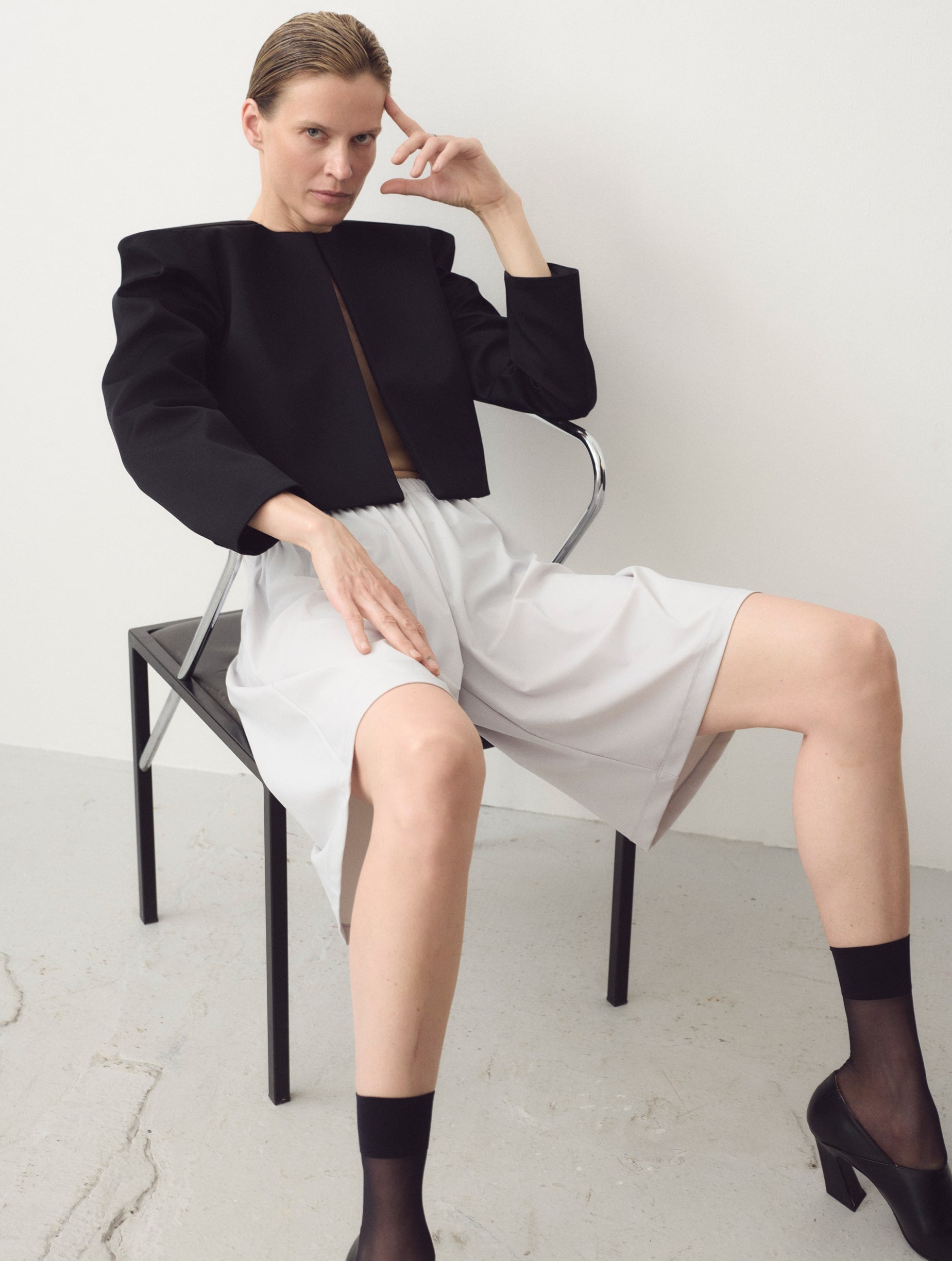 Elastic grey shorts with an elastic waistband for a comfortable fit.