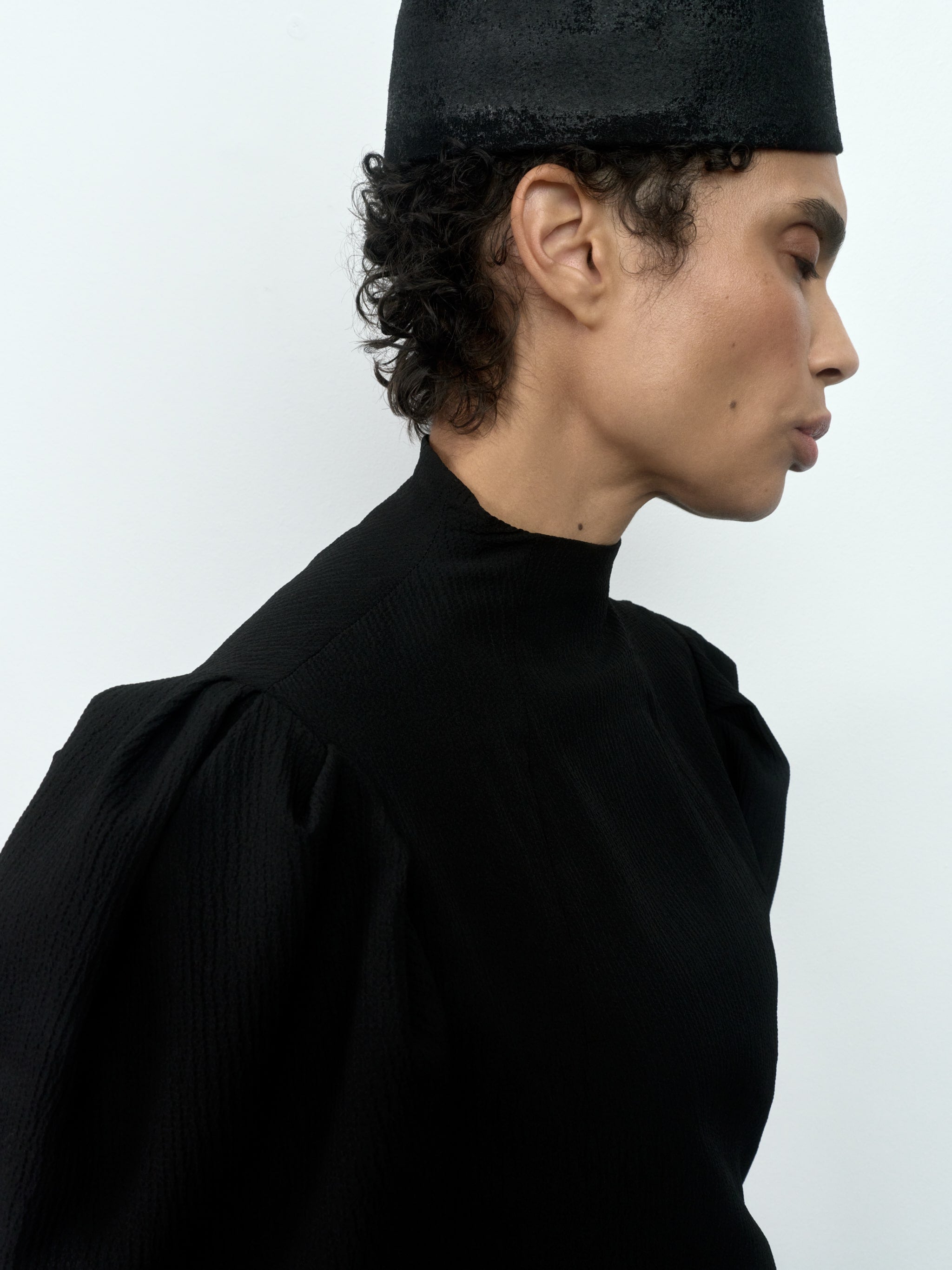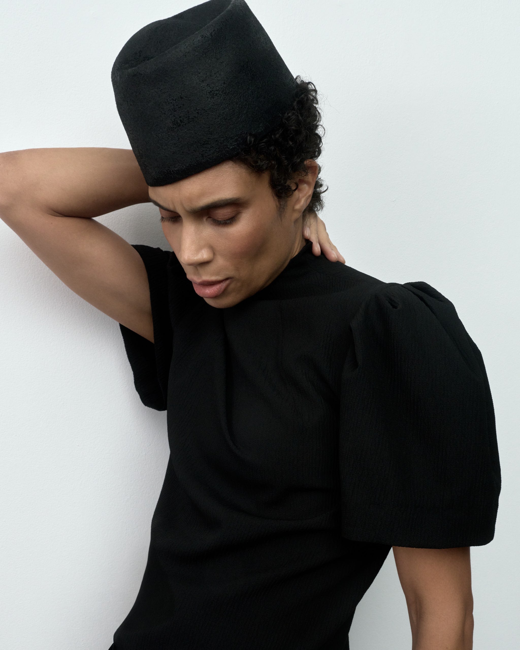 THE HAT JULIA in Black Ink is crafted from premium felted wool and hand-printed with black acrylic, creating a soft yet structured silhouette. Inspired by the classic pillbox shape, its minimalist dome form and seamless construction evoke timeless sophistication. The clean, sculptural lines make it a versatile accessory that transitions effortlessly between artistic expression and refined elegance. Each piece is individually hand-finished, making every hat a unique statement of craftsmanship.